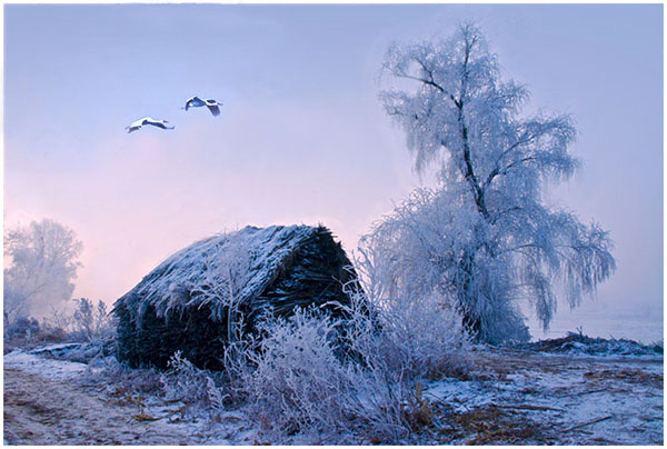 6、拍摄雪景,最好以逆光或侧逆光为宜(但这不是绝对的,顺光侧顺光拍出的雾凇很白,也很漂亮)。这是因为雪有很好的反光性,被摄物体的阴影侧也有很强的光亮,用逆光拍出来的照片,因可以捕捉到雪粒上的光线,会产生一种平光照明或阴沉天气时所不能得到的深度感和美妙效果必须配上合适的遮光罩,以遮挡来自雪和太阳的眩光,还能避免阳光直射时,镜片上的灰尘产生散射光,使照片出现成像清晰的光点或亮斑。室外摄影时,拍摄前后最好将相机放进棉衣里保暖,拍照时再取出来。从室外到室内时,应盖上镜头盖,停上10至20分钟后再打开,以防镜头因为由冷变热而“出汗”,影响之后的拍摄。