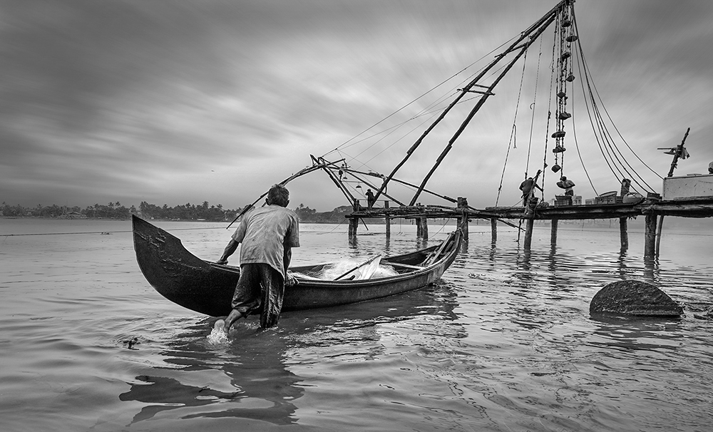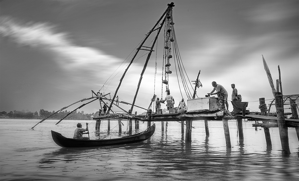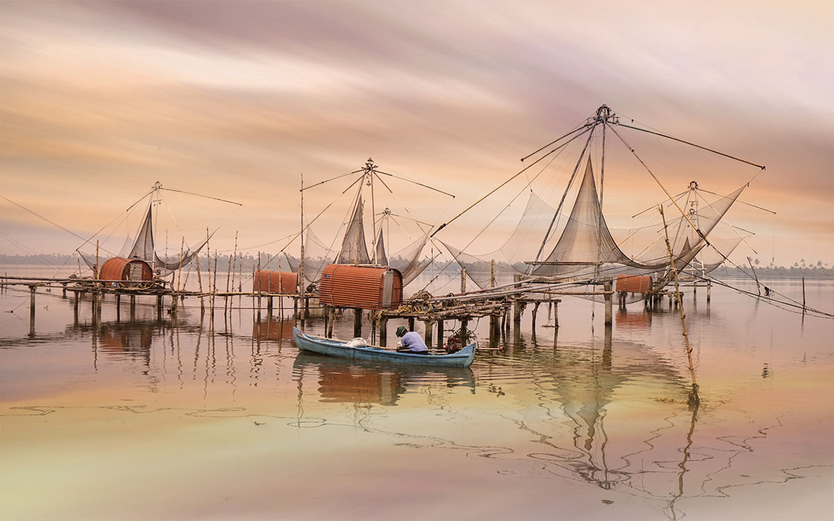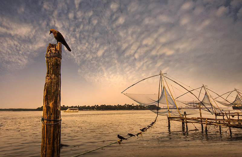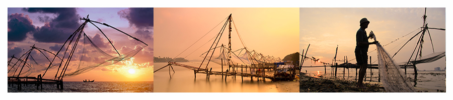 全天科钦海边渔村自由创作。清晨中国渔网晨光拍摄。拍摄渔民清晨撒网的场景。中国渔网群集中在科钦堡海滨,每日清晨与傍晚渔民集中作业,形成独特的渔耕景观,周边配套有海鲜市场与小吃摊,是体验科钦海滨生活的核心区域。下午拍摄科钦老城与香料市场。