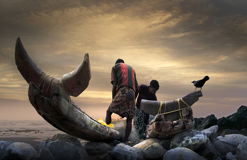 早餐后,乘车前往EV海滩、维津詹姆海滩(Vizhinjam Beach)。在这里我们可以拍摄到渔民们站在涂得五颜六色的渔船上收网摘鱼,并将捕获的一批批新鲜的大鱼拖上甲板,然后就地出售的场景,还可以拍摄到渔民间嬉笑打趣的场景、渔民和商人交易的严肃场景,以及在地上翻跳的鱼、渔民们的笑脸、色彩斑斓的服饰等元素。