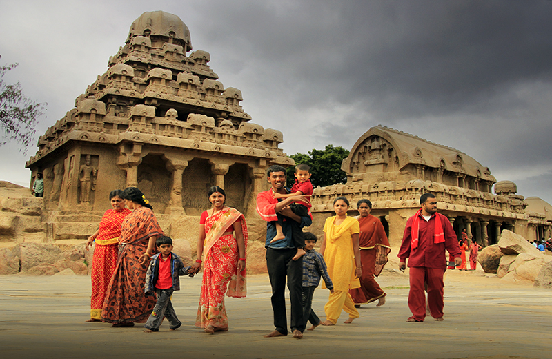 午餐后乘车前往马哈巴利普拉姆(90公里,1小时)。马哈巴利普拉姆是印度泰米尔纳德邦Kancheepuram县的一个城镇。又称为“七寺城”,是泰米尔纳杜邦的旅游胜地。这里的海岸上布满了令人眼花缭乱的鹅卵石,形成了奇特的鹅卵石风景线。