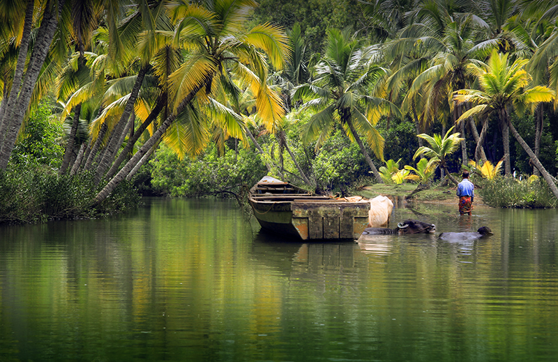 早餐后,前往库玛拉孔。库玛拉孔位于喀拉拉邦,距海岸线约20公里,周边满布椰林,曲折间错着河流、鸟湖与运河,浑然天成的水乡泽国,貌似中国苏州,不过场面更加壮观。之后前往有“印度威尼斯”之称的印度南部城市和港口—阿勒皮,入住当地别致的水上船屋。阿勒皮拥有自己独特的水域系统,整座城市有着蛛网般密集的水道和大大小小1000多艘船屋。