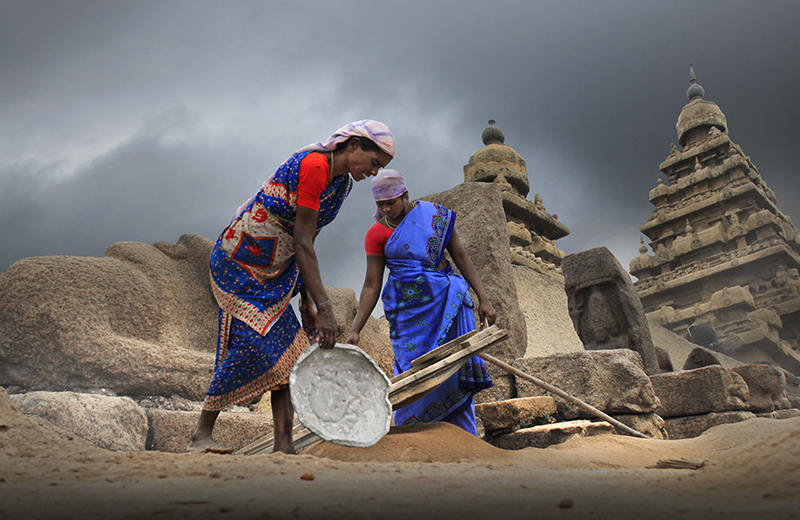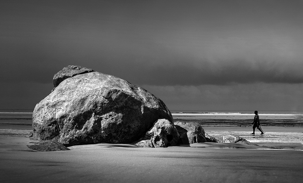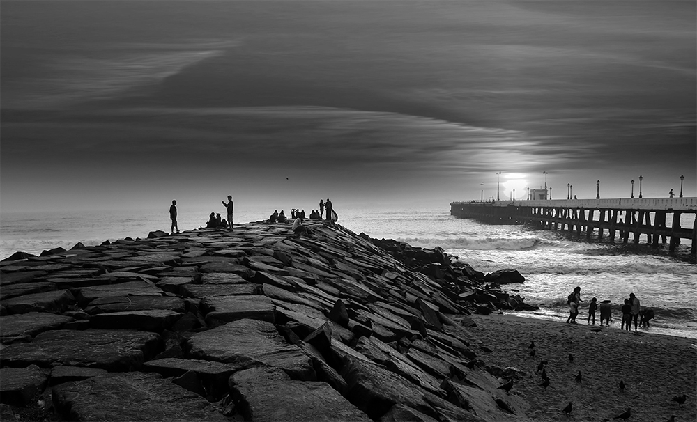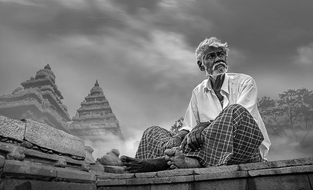 早餐后赴海边,拍摄黑色石块垒砌的防波堤,被海水打湿后的岩石纹理,非常适合黑白摄影。午餐后乘车前往马哈巴利普拉姆(90公里,1小时)。马哈巴利普拉姆又称为“七寺城”,是泰米尔纳杜邦的旅游胜地。这里的海岸上布满了鹅卵石,形成了奇特的鹅卵石风景线。