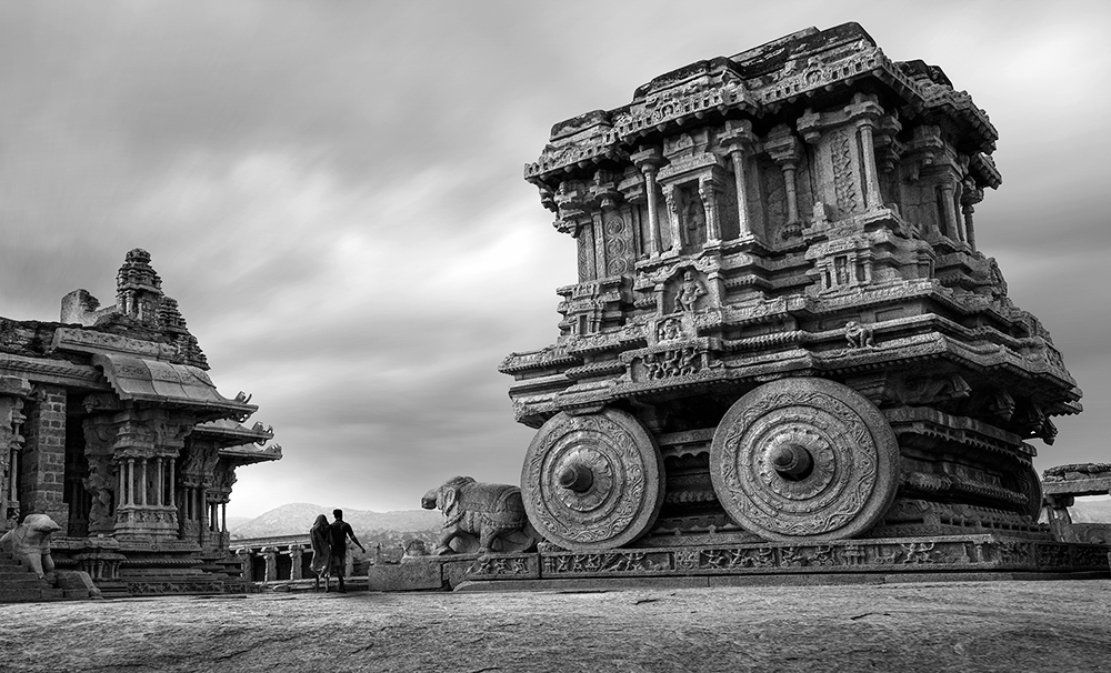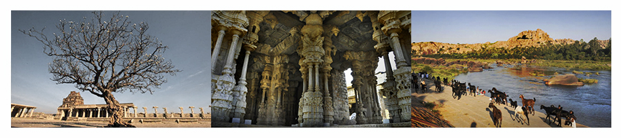 亨比全天摄影。重点拍摄:克里希纳神庙、那罗辛哈神像、湿婆林伽、哈扎拉拉玛神庙(罗摩衍那石刻)、莲花宫与皇家象厩等。