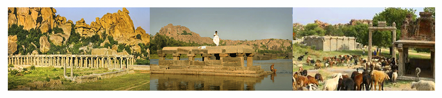 亨比是成龙电影《神话》外景拍摄地点。它曾是14~16世纪印度教王国维查耶纳加尔帝国的都城,现在已经变为了一片废墟,成为了一座僻静的小村庄。40多处印度教寺院的历史遗址散布其中,是主要的游览景点。这些历史遗址和周围荒凉的巨型岩石群融合在一起,正是这样奇妙的组合才产生了亨比不寻常的魅力。这里的遗址群于1986年被列人《世界遗产名录》,但是还没有被完全开发成旅游地,因此在这里见不到众多游客集中的喧闹场面。猴子爬到屋顶嬉戏吵闹,神圣的黄牛在乡间小道上漫步,田间辛勤劳作的农民,在寂静当中,眺望随着德干高原的风摇曳的草原,感受南部印度安闲清净的乡村生活。